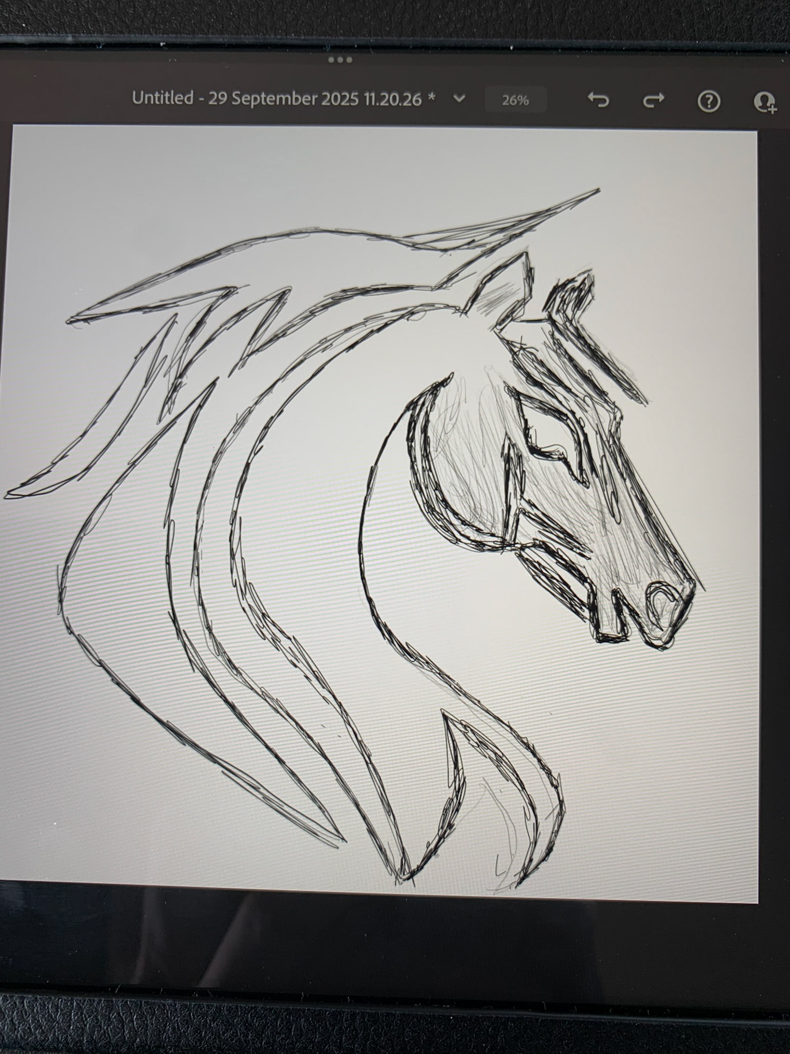 The goal was to create a symbol that embodies controlled power - a warrior spirit without noise. The emblem began as hand drawn sketching on Adobe Fresco, then the sketch was refined using Adobe Illustrator to form the futuristic horse mark.